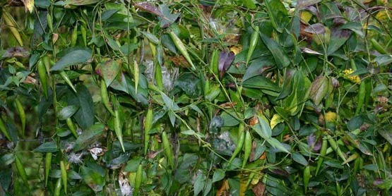 Swallow-worts are vines, and form dense mats. Their leaves generally grow in large, shiny, dark green, opposite pairs, though the color and shape vary slightly based on location. Their seeds are enclosed in slender pods similar to those of milkweed, which are green while developing and turn brown and split open to disperse seeds when mature. Also similar to milkweed, the seeds are borne by white fluff and carried by the wind. The flowers are small and star shaped with five petals- very dark purple on black swallow-wort and pink to reddish brown on pale swallow-wort. Black swallow-wort also spreads from rhizomes located at the base of the stem that can sprout and grow into new vines, so that several stems can be traced to the same base.;
